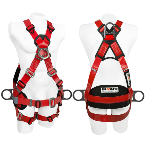 ARNÉS EN X DE CUERPO ENTERO, 4 ARGOLLAS EN POLIURETANO CON HERRAJE EN ACERO INOXIDABLE Y SOPORTE LUMBAR, CUMPLE ANSI/ASSP Z359.11-2021 CSA Z259.12 MARCA: INSAFE – Ref.IN8004-1PSE