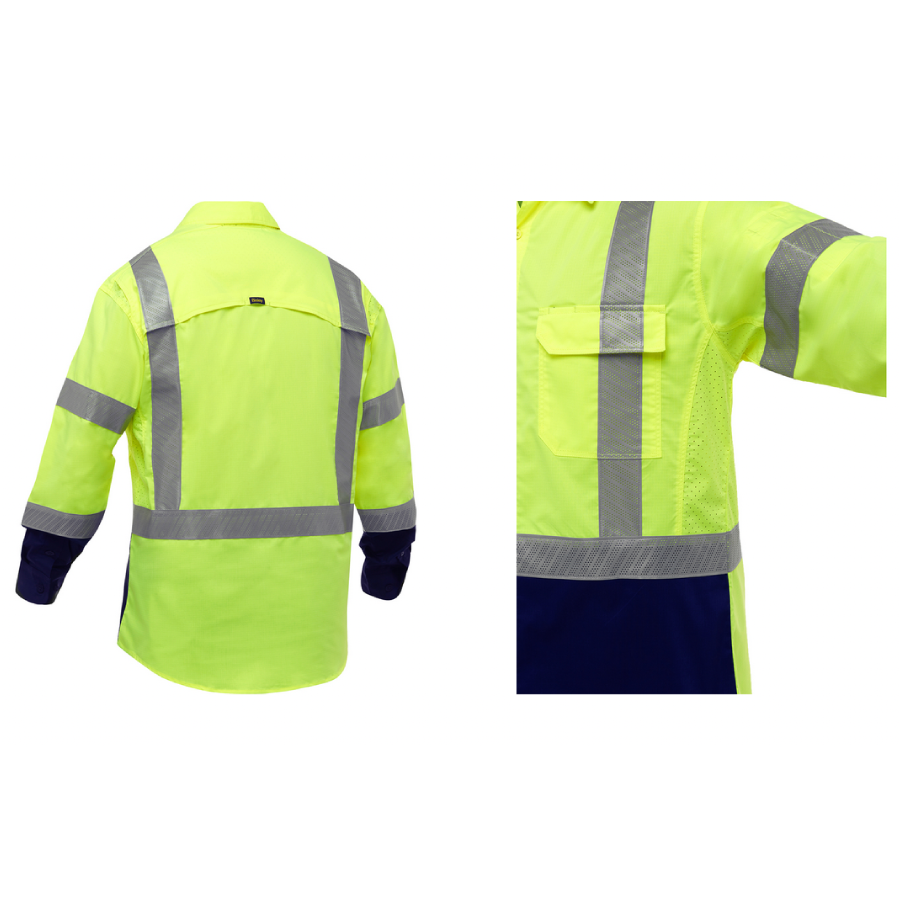 CAMISA CLASE 3 MANGA LARGA, BOLSILLOS EN EL PECHO, BOTONES, FONDO MARINO – Ref.313M6491H-YN/S