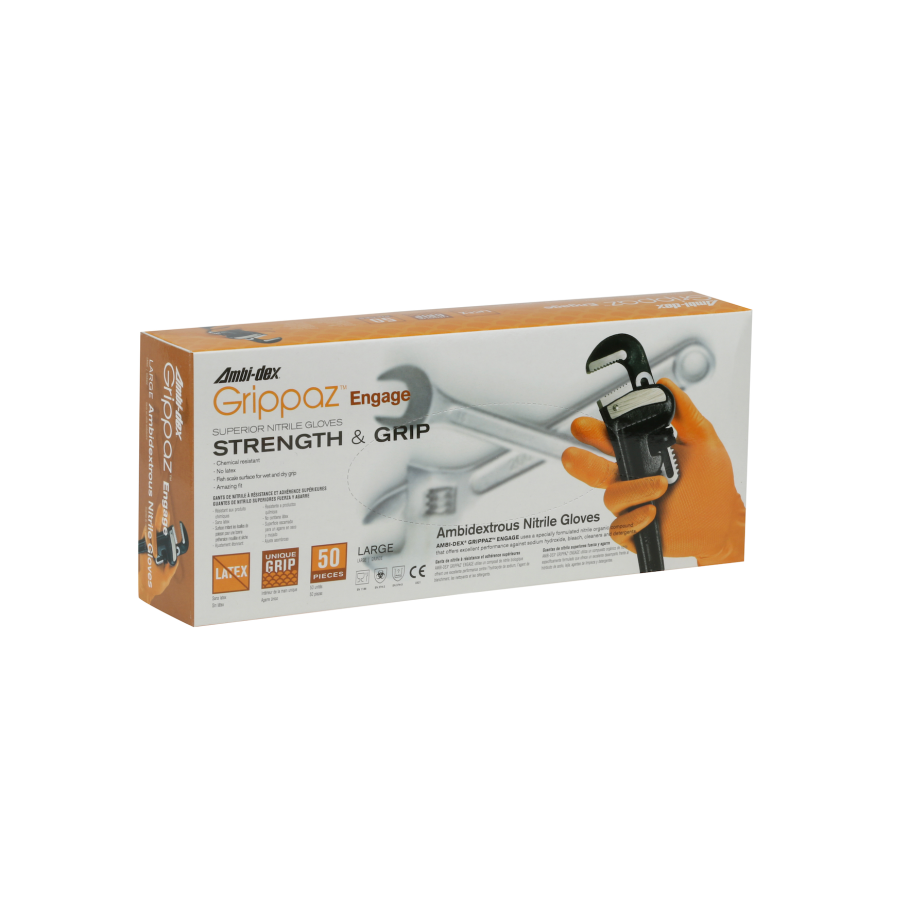 GUANTE DE NITRILO AMBI-DEX GRIPPAZ ENGAGE CODIGO 67-307, CAJA DE 50/1 (25 PARES), MAYOR DESTREZA AMPLIADA PARA MAYOR COMODIDAD, MOVILIDAD Y MENOS FATIGA DE LA MANO – Ref.67-307